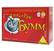 Тик Так Бумм – очень весёлая и интересная игра с простыми правилами, которая отлично подойдёт и для вечеринок, и в качестве семейной игры, а также станет замечательным подарком. В неё может играть одновременно от 2 до 12 человек – при любом количестве участников игра будет одинаково динамичной и напряжённой!